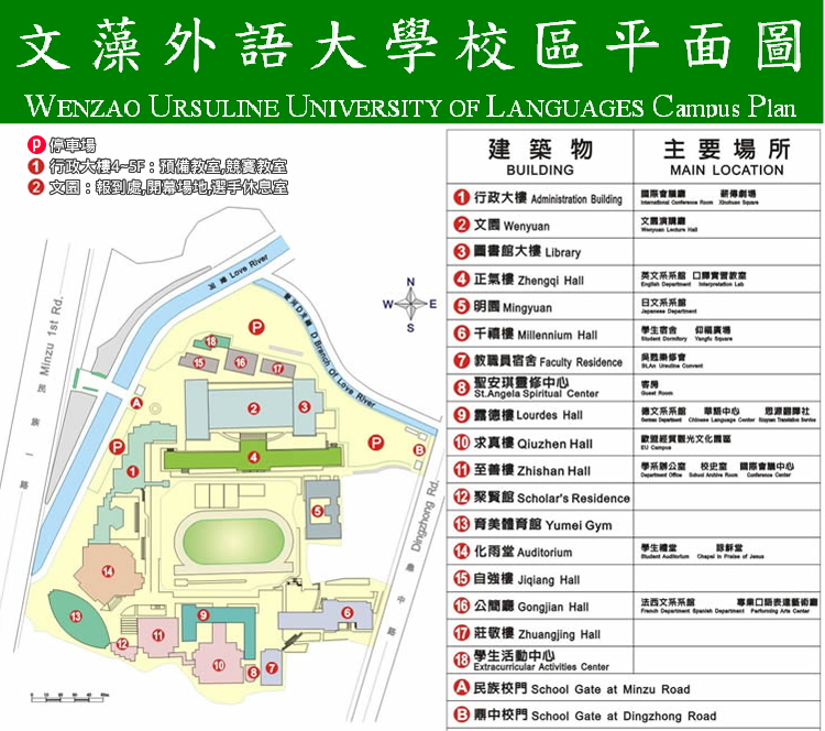 - 統聯客運:1、25、61、73、301、303、308、326號直抵本校區。